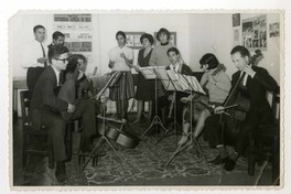 [Conjunto de música antigüa] [fotografía]. Santiago, Chile : 1 fotografía : Monocromo en blanco y negro, 11,5 x 15 cm. .