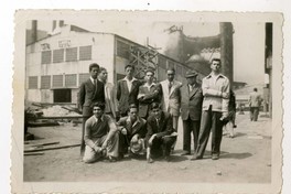 Oscar Castro Zúñiga junto a un grupo de personas en una fábrica.