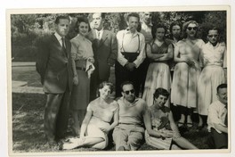 Braulio Arenas sentado en el suelo : primero de derecha a izquierda, entre otras y otros asistentes.