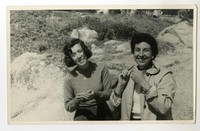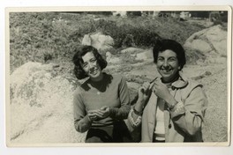 Francisca Ossandón junto a otra persona sentadas en unas rocas.