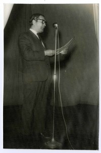 Juvencio Valle [fotografía]. Santiago, Chile : [Producción no identificada], 10 de diciembre de 1965. 1 fotografía : Monocromo en blanco y negro, 17 x 11 cm. .