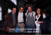 Manuel Silva Acevedo junto a Gonzalo Millán, un poeta Salvadoreño y una poeta colombiana en el Primer Congreso de Poesía Escrita en Lengua Española.