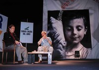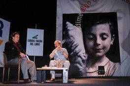 Manuel Silva junto a Gonzalo Millán, conversando sobre el libro "Trece lunas".