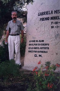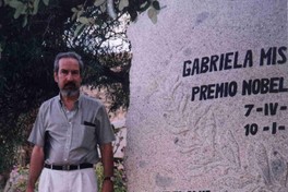 Manuel Silva Acevedo junto a la tumba de Gabriela Mistral.