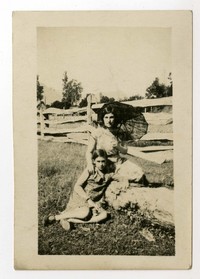 Mirella Latorre y Virginia Blanco [fotografía]. San Javier, Chile : [Producción no identificada], cerca de 1930. 1 fotografía : Monocromo blanco y negro, 9 x 6 cm. .