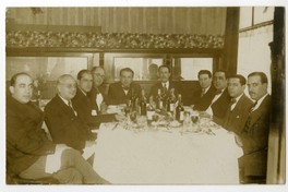 Mariano Latorre, Carlos Yáñez, Luis Durand entre otros asistentes en un almuerzo de camaradería.