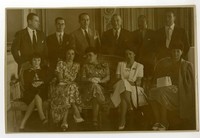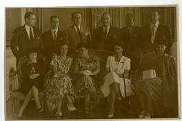 Mirella Latorre, hija del escritor Mariano Latorre, sentada : segunda de izquierda a derecha, entre otros y otras asistentes.