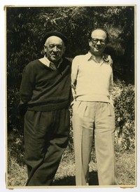 Salvador Reyes y Blaise Cendrars [fotografía]. Saint Segond, Francia : [Producción no identificada], cerca de 1950. 1 fotografía : Monocromo en blanco y negro, 17 x 12 cm. .