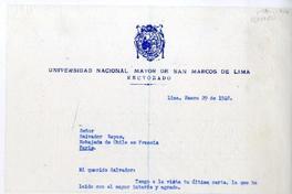 Lima, Perú [a] Salvador Reyes, Paris, Francia Cartas, enero 29 y abril 15 de 1948, [manuscrito] Luis Alberto Sánchez.