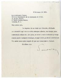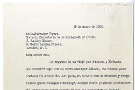 Oxford, Inglaterra [a] Salvador Reyes, Londres Carta, 1950 mayo 15, [manuscrito] Salvador de Madariaga.