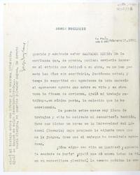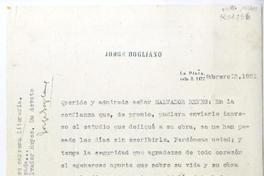 La Plata, Argentina [a] Salvador Reyes Carta, 1951 febrero 13, [manuscrito] Jorge Bogliano.