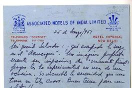 New Delhi, India [a] Salvador Reyes Cartas, 25 de marzo de 1951 y 27 de abril de 1952, [manuscrito] Juan Marín.