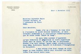 Roma, Italia [a] Salvador Reyes Carta, 1953 diciembre 4, [manuscrito] Renato Bassoli.