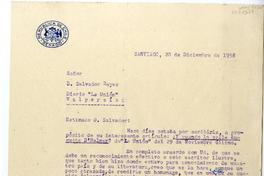 Santiago, Chile [a] Salvador Reyes, Valparaíso Carta, 1958 diciembre 20, [manuscrito] Carlos Alberto Martínez.