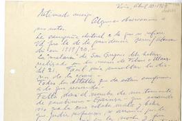 Le da algunas observaciones a sus notas para su libro : sobre la presidencia de Barros y Alessandri, la "Matanza" de San Gregorio, y le recomienda que debe mencionar a Emilio Recabarren quién predicó por años la guerra de clases.
