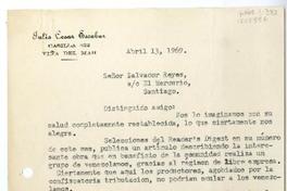 Viña del Mar, Chile [a] Salvador Reyes, Santiago, Chile Cartas, abril y octubre de 1969 y febrero de 1970, [manuscrito] Julio César Escobar.