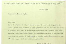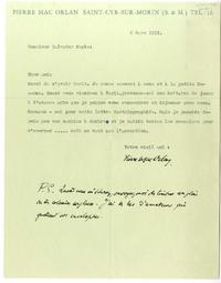 Saint-Cyr-Sur-Morin, Francia [a] Salvador Reyes Cartas, entre 1951 y 1959, [manuscrito] Pierre Mac Orlan.
