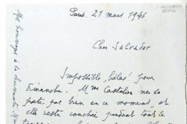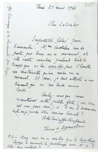 Paris y Souché, Francia [a] Salvador Reyes Cartas, desde febrero a diciembre de 1946, [manuscrito] Francis de Miomandre.
