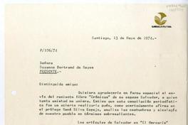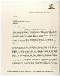 Santiago, Chile [a] Suzanne Bertrand cartas, entre 1974 y 1975, [manuscrito] Editora Nacional Gabriela Mistral.