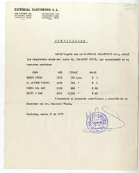 Santiago, Chile [a] Suzanne Bertrand Certificado, 1970 marzo 31, [manuscrito] Editorial Nascimento S.A. (Chile).