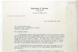 Cartas que tratan sobre la traducción al inglés del Cuento de Salvador Reyes "El anillo de esmeralda" para ser incorporado en una edición de cuentistas hipanos. Además menciona la visita de Manuel Rojas a la Universidad.