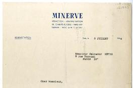 Paris, Francia [a] Salvador Reyes Cartas, 7 de marzo y 5 de julio de 1946, [manuscrito] Minerve.