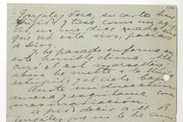 Señala que ha estado enferma por el mal clima. Pide a González Vera que le diga a M. R. González que no ha podido cumplir su promesa de pedirle sus libros para la biblioteca del instituto. Espera que la visite junto a Manuel Rojas.