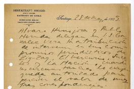 Comenta que le pidieron hacer abandono de la pieza que arrendaba. Delega, junto a Alvaro Hinojosa, atribuciones para que González Vera intervenga en compromisos periodísticos de ambos, en Zig-Zag, El Mercurio, Sucesos y La Nación y también para que perciba el valor de ambas correspondencias.