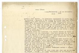 Colombo, Ceilán [a] José Santos González Vera Carta, 27 de noviembre de 1929, [manuscrito] Pablo Neruda.