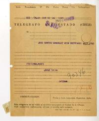 Santiago, Chile [a] José Santos González Vera Telegramas, Abril de 1959, [manuscrito] / Varios autores. 7 telegramas ; 25 x 18,1 cm. .