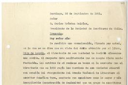 3 cartas : Santiago, 28 de septiembre de 1951 a Carlos Préndez Saldías -- Arizona, 29 de noviembre de 1957 -- Middlebury, 1 de agosto de 1959.
