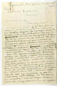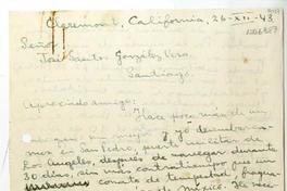 California [a] José Santos González Vera, Santiago, Chile Cartas, 1943 diciembre 26 y 1944 diciembre 23, [manuscrito] Jorge Millas.