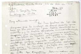 Río Piedras, Puerto Rico [a] José Santos González Vera, Santiago, Chile Carta, 1948 diciembre 26, [manuscrito] Jorge Millas.