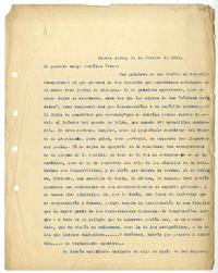Agradece sus palabras joviales y le habla sobre las mujeres en distintas actividades. Menciona a González Pacheco y sobre dos libros que no ha podido encontrar.