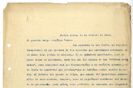 Con : 1 carta a Laura Vera de Lautaro Vera, del 30 de mayo de 1926 desde la Oficina Caupolicán en Taltal (1 hoja) -- 1 carta a González Vera de Daniel Schweitzer, del 14 de febrero de 1925 desde Buenos Aires (2 hojas).
