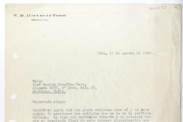 Lima, Perú [a] José Santos González Vera Carta, 1946 agosto 23, [manuscrito] Víctor Haya de la Torre.