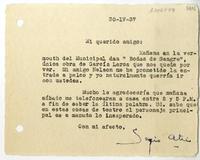 Santiago, Chile [a] José Santos González Vera Tarjetas, Entre 1937 y 1938, [manuscrito] Sergio Atria.