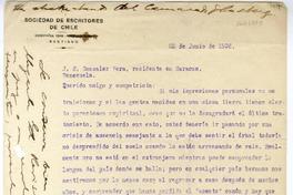 Santiago, Chile [a] José Santos González Vera, Caracas, Venezuela Cartas, 22 de junio y 30 de noviembre de 1936, [manuscrito] Ernesto Montenegro.