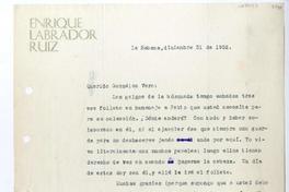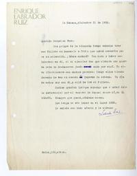 La Habana, Cuba [a] José Santos González Vera Cartas, Entre 1952 y 1962, [manuscrito] Enrique Labrador Ruiz.