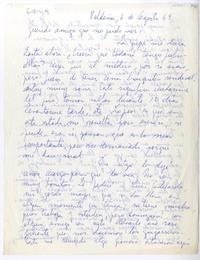 Valdivia, Chile [a] José Santos González Vera Cartas, 6 de agosto al 14 de noviembre de 1969, [manuscrito] / Alicia Morel. 4 cartas (6 hojas) ; 27,5 x 21,5 cm. .