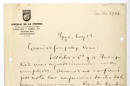 1 carta : Archivo del Escritor Biblioteca Nacional, Avenida Libertador Bernardo O'Higgins, Santiago, Chile.