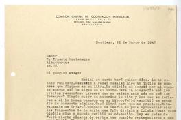 Santiago, Chile [a] Ernesto Montenegro Carta, 1947 marzo 22, [manuscrito] José Santos González Vera.