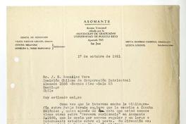 Chile, Argentina, Bolivia, Inglaterra, Estados Unidos, Suecia, México, Puerto Rico [a] José Santos González Vera Cartas, 1951, [manuscrito] Varios autores.