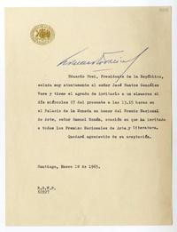 Chile, Estados Unidos, Suecia [a] José Santos González Vera Cartas, 1965, [manuscrito] / Varios autores. 3 cartas (3 hojas) ; 28 x 21,5 cm. .