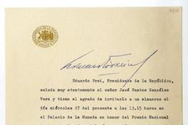 Nota de Eduardo Frei, Presidente de la República de la época, quien invita a González Vera a un almuerzo, en honor del Premio Nacional de Arte, Sr. Samuel Román -- Nils Hedberg acusa recibo del libro "Un prosista chileno" de González Vera -- Alfredo Lozada comenta que se invitó a Nicanor Parra, a la Universidad de Louisiana.