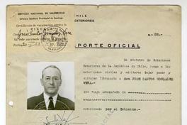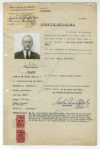 Santiago, Chile [a] José Santos González Vera Pasaporte oficial, 23 de enero de 1953, [manuscrito] Ministerio de Relaciones Exteriores de Chile.