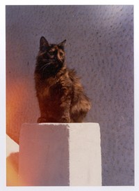 La gata "Natalie" [fotografía]. Santiago, Chile : [Producción no identificada], Marzo de 1981. 1 fotografía : Color, 8,8 x 12,5 cm. .