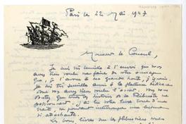 París, Francia [a] Salvador Reyes Carta, 1947 mayo 22, [manuscrito] Marin-Marie.