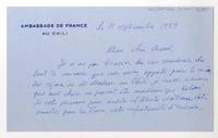 Tarjeta con membrete : Ambassade de France, au Chili.