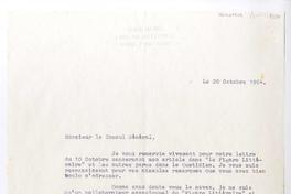 Comunica que de acuerdo al artículo publicado en "Le Figaro Littéraire" enviará su carta al Redactor en jefe quién le responderá sobre sus inquietudes.